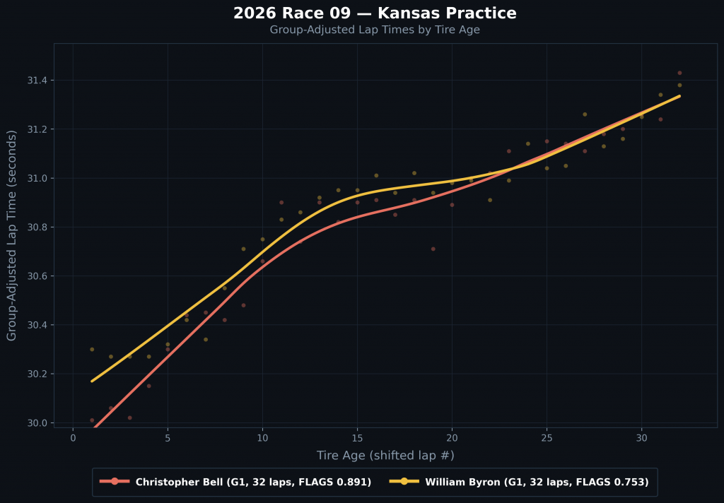 Bell topped practice FLAGS and long-run pace, and he had 80th percentile or better numbers in tire degradation and consistency as well.