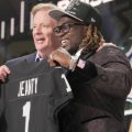 Malik Nabers draws skepticism due to his nagging toe injury — both hosts prefer avoiding first-round risks and would rather target Brian Thomas Jr., whom they rank higher than consensus (WR5 for both). Thomas gets compared to Randy Moss with his size-speed combination and should benefit significantly from Liam Cohen’s slot-heavy scheme.