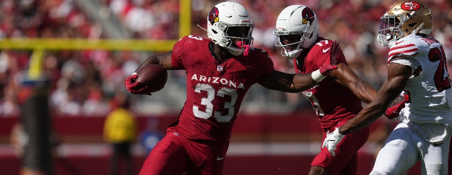Second-year tailback Trey Benson has looked good in his limited touches as a primary backup this season. He is averaging 6.0 yards/attempt and caught eight of 11 targets through the first three games. Now, he gets the opportunity to take a gigantic workload for Arizona with the season-ending injury to veteran James Conner.