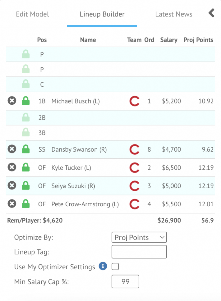 With the Lineup Builder, it’s easy to incorporate stacks into DFS rosters.