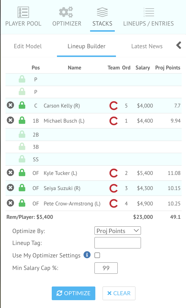 With the Lineup Builder, it’s easy to incorporate stacks into DFS rosters.