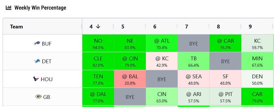 On top of that, this is still the highest projected odds they have all season, so it’s not a bad time to use them. Not having Denver available in Week 10 will make things a bit challenging, but there’s a chance that other injuries, trades, etc., will create another obvious candidate then.